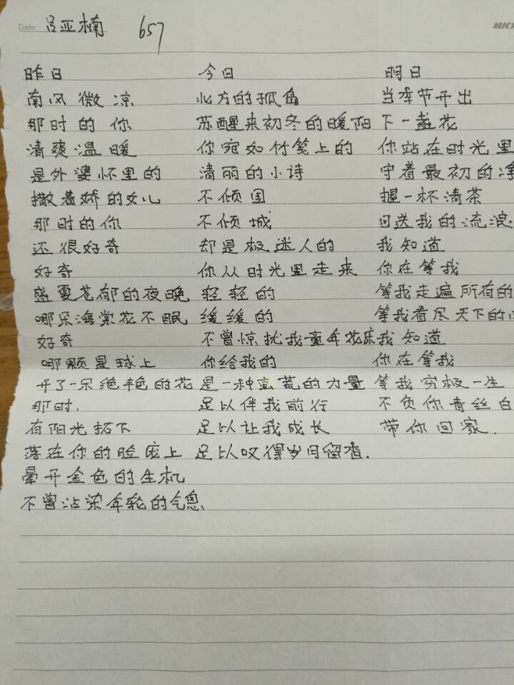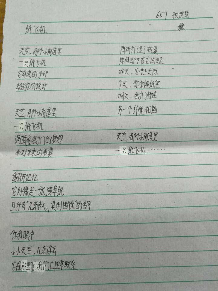 657班第二季迎春诗会部分学生作品