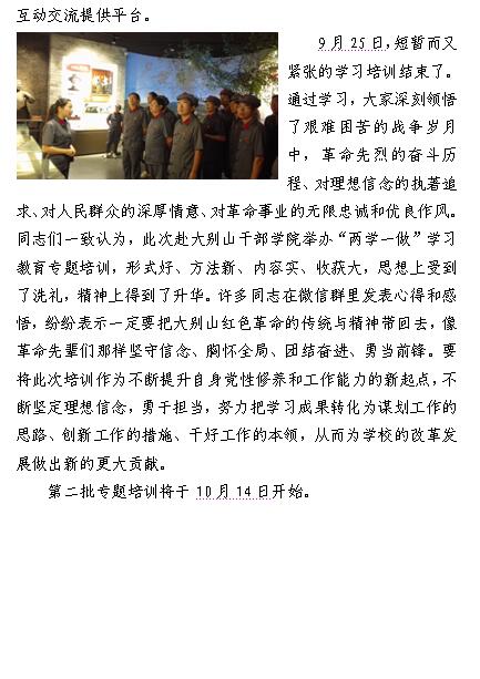 我校“两学一做”学习教育专题培训在大别山干部学院成功举行