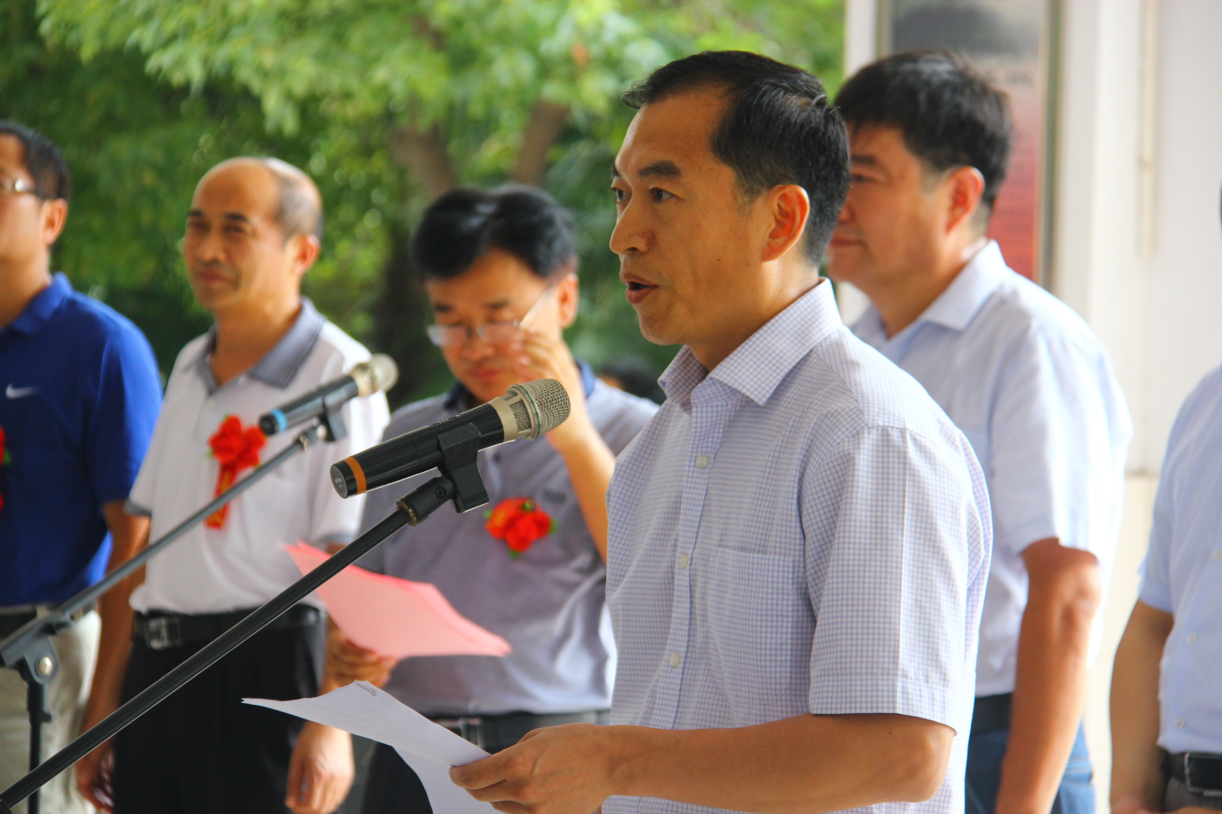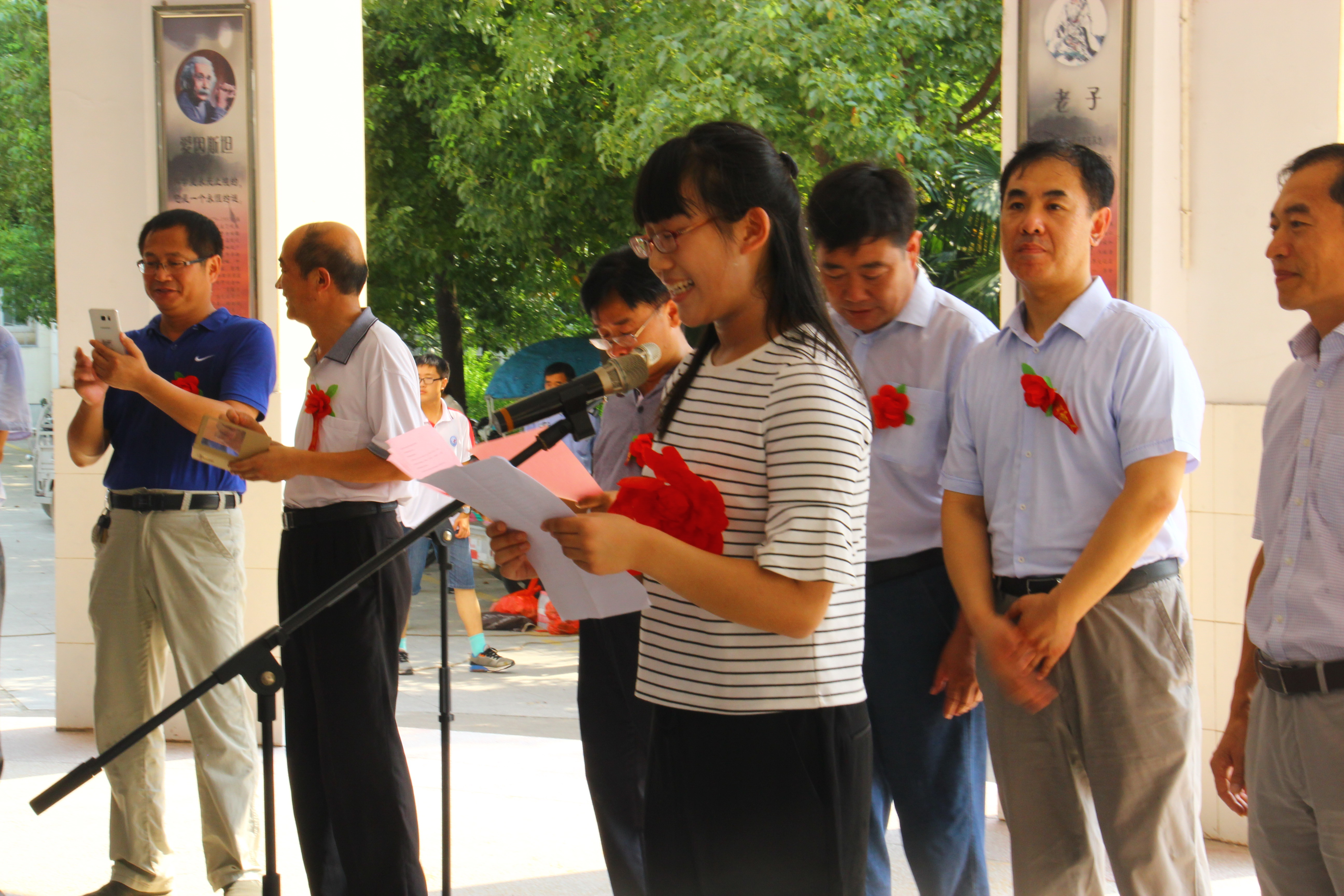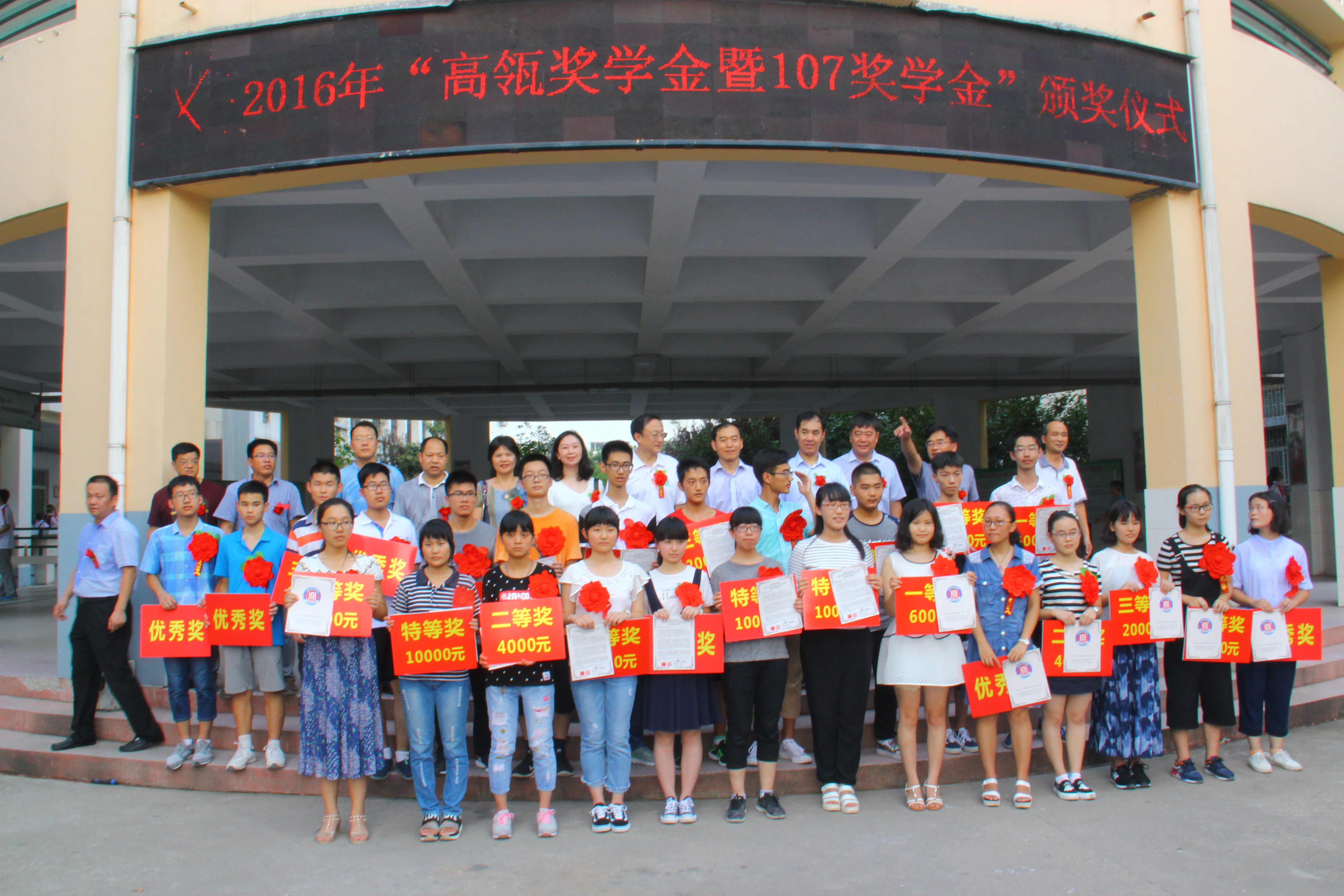 8月15日,我校在教学楼小广场举行2016年高瓴奖学金暨107奖学金发放仪式,高瓴资本集团执行董事李艳、中国人民大学高礼研究院执行院长卢斌博士、驻马店市政府副秘书长谢李利、驻马店市教体局局长李华,我校全体班子成员、中层干部、教师代表和宏志班学生参加,仪式由我校党委书记王红卫主持。